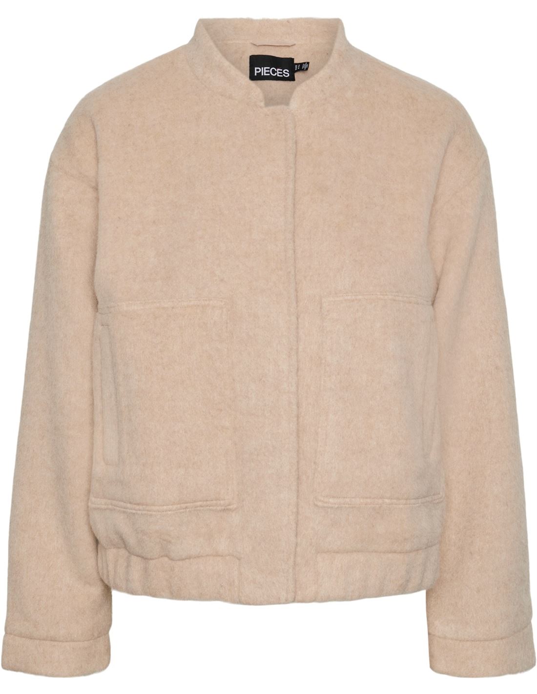 Bomber de mujer de manga larga. Cuello subido y bolsillos delanteros.
