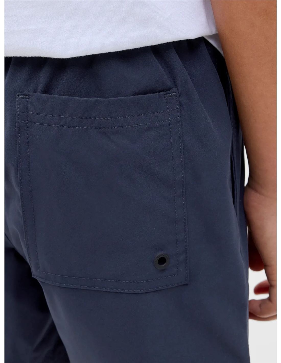 Bañador de niño junior confeccionado con una mezcla de fibras recicladas que no se estiran. Bolsillos delanteros y bolsillo trasero. Tiro medio. Cintura elástica con cordón.