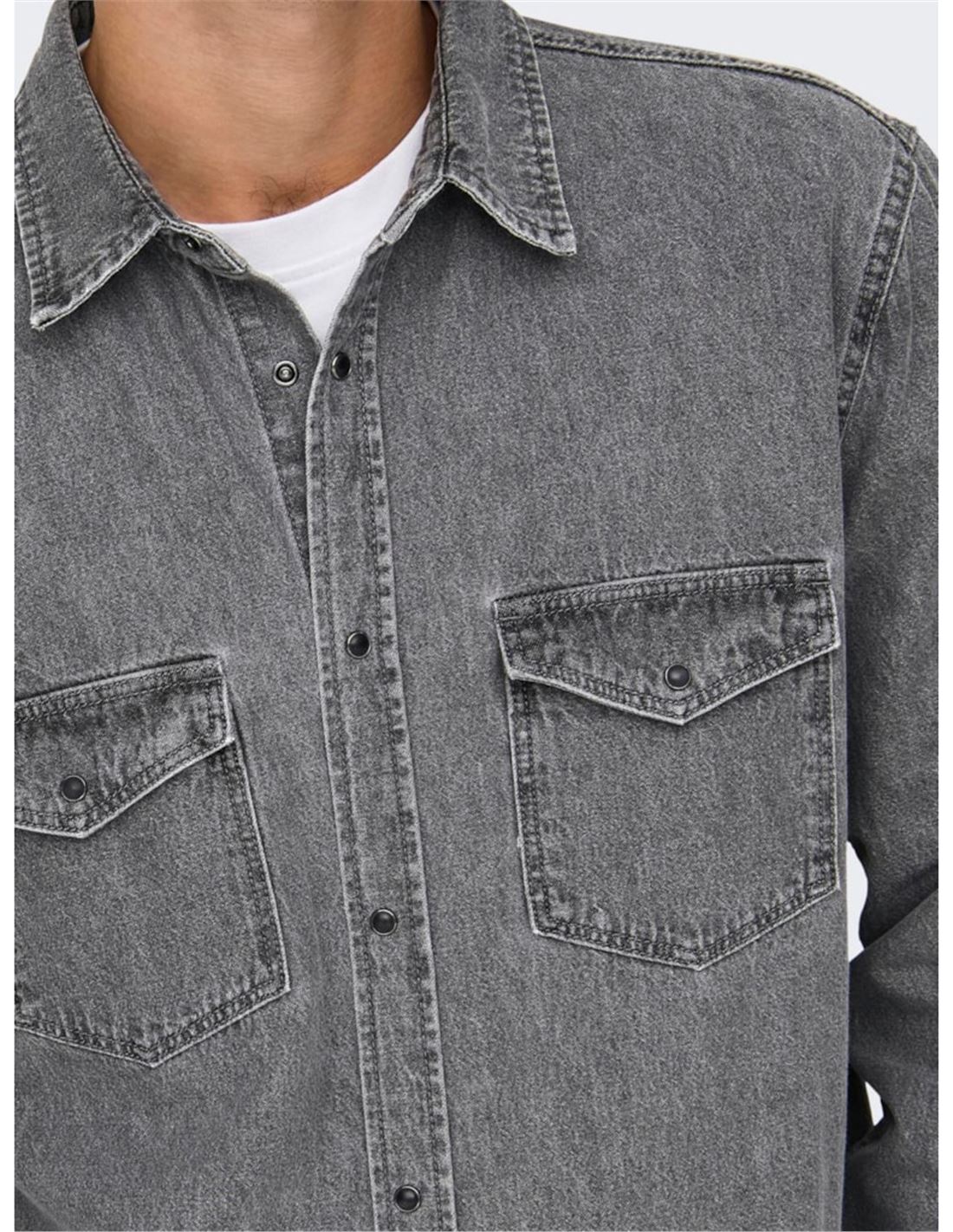CAMISA VAQUERA DENNIN HOMBRE GRIS ONLY & SONS ONSBANE 3247 DNM NOOS 22023247
