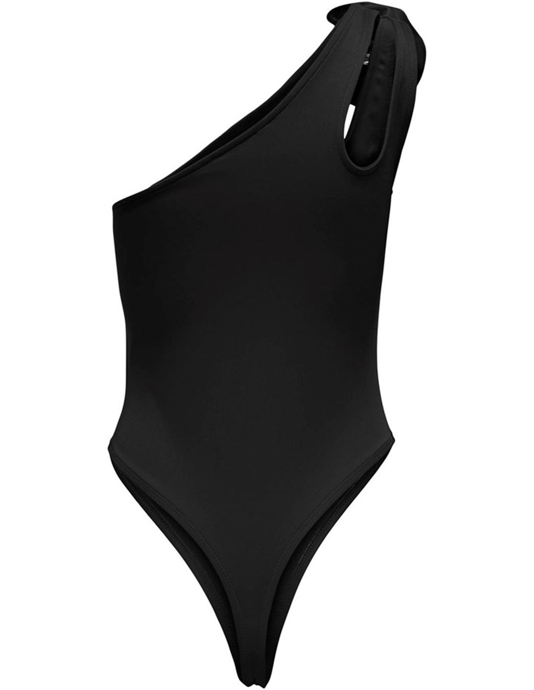 Body de mujer asimétrico con detalle de flor. Composición: 95% Poliéster, 5% Elastano