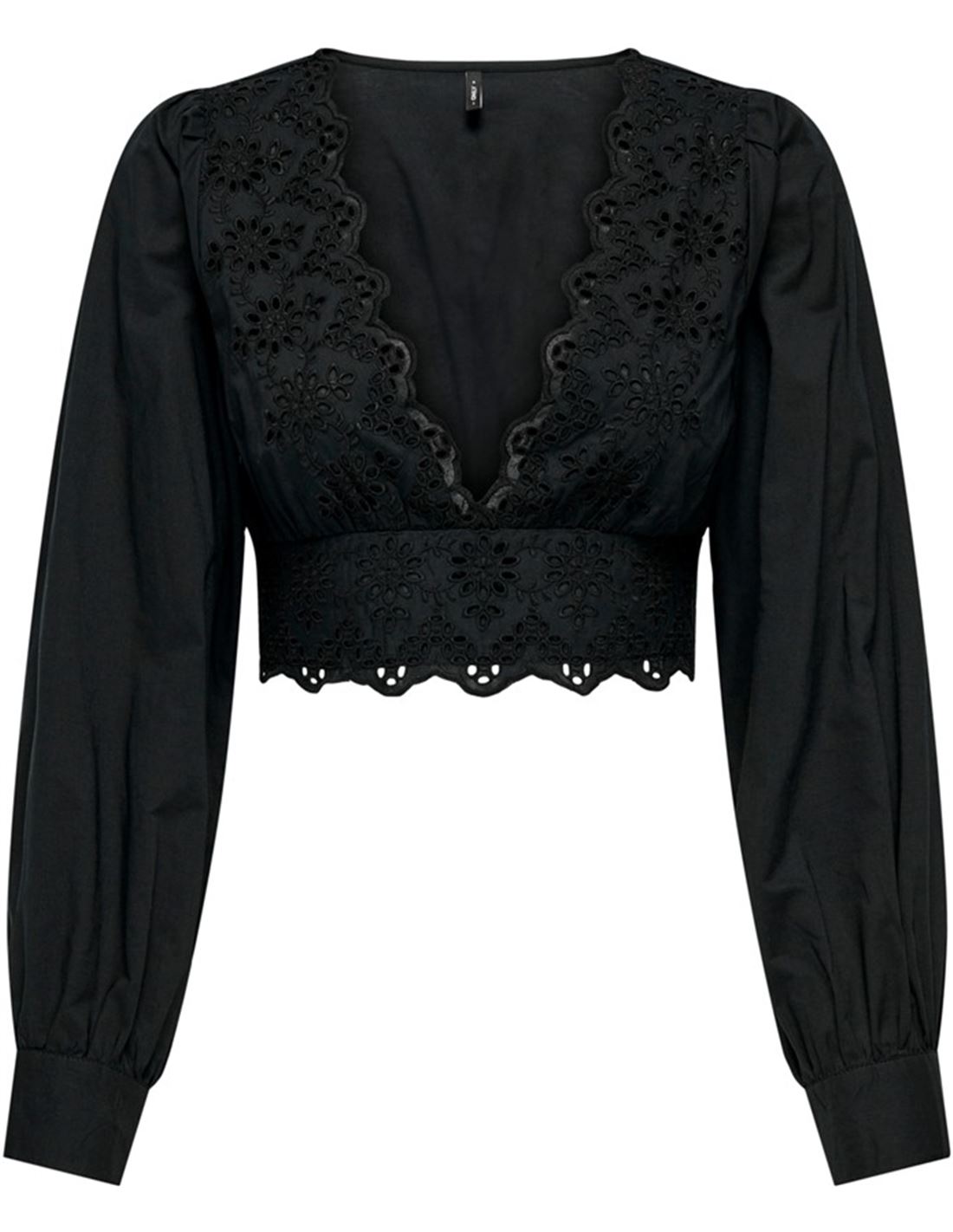Top de mujer de manga larga. Escote en V con detalle perforado.