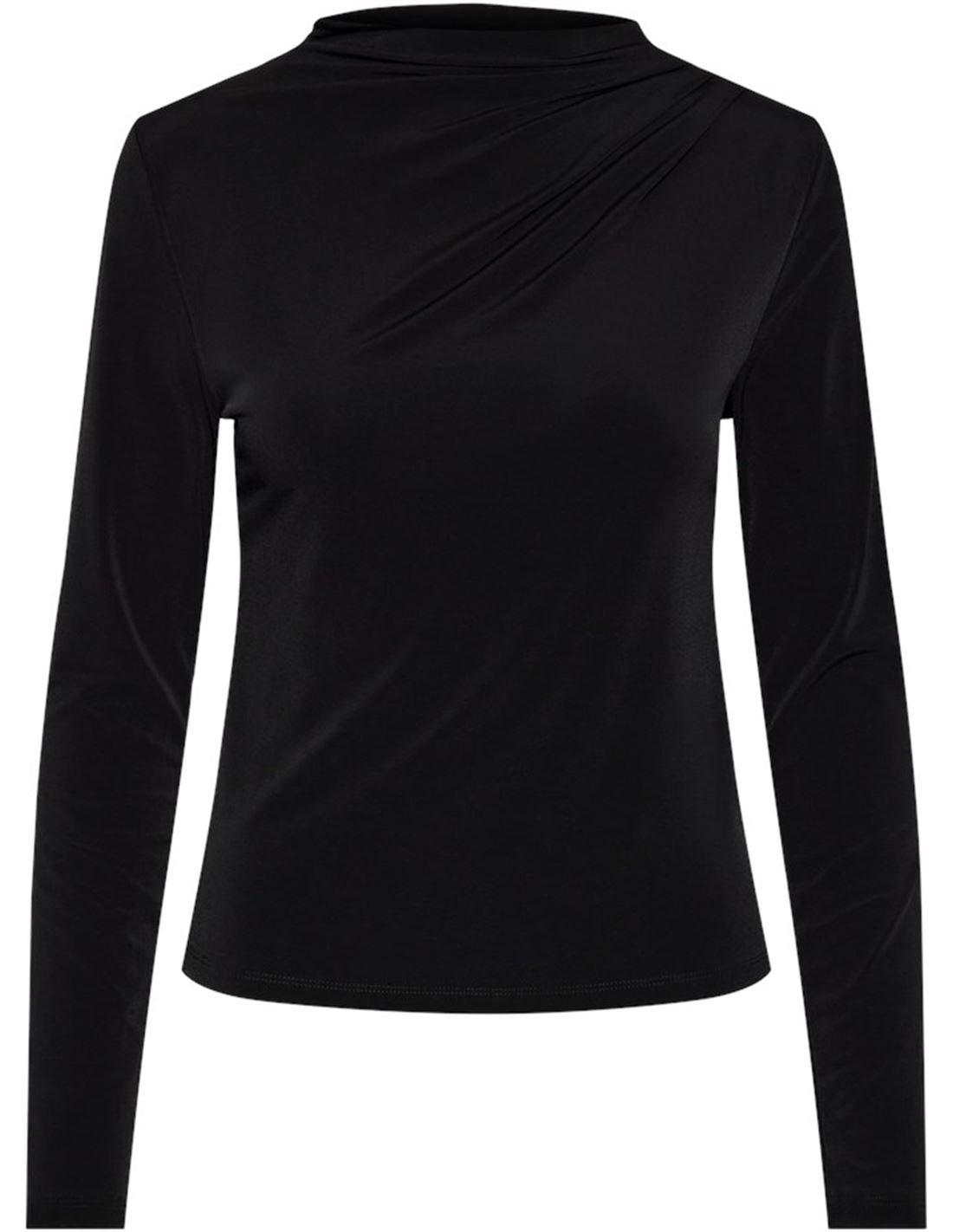 Camiseta de mujer de manga larga y cuello subido con plisado. Tejido suave y elástico. Slim fit.