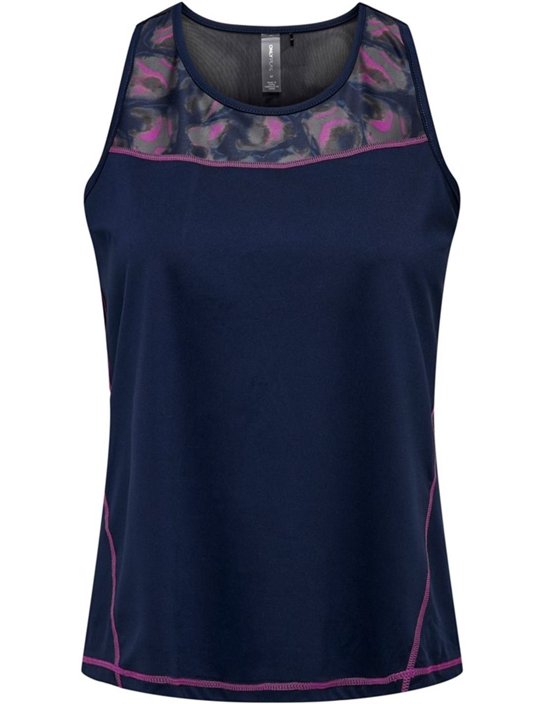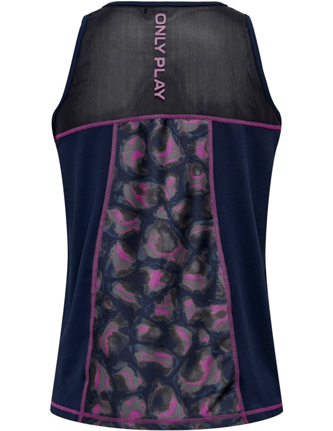 Camiseta deportiva de mujer sin mangas. Estampado en parte delantera superior y trasera.