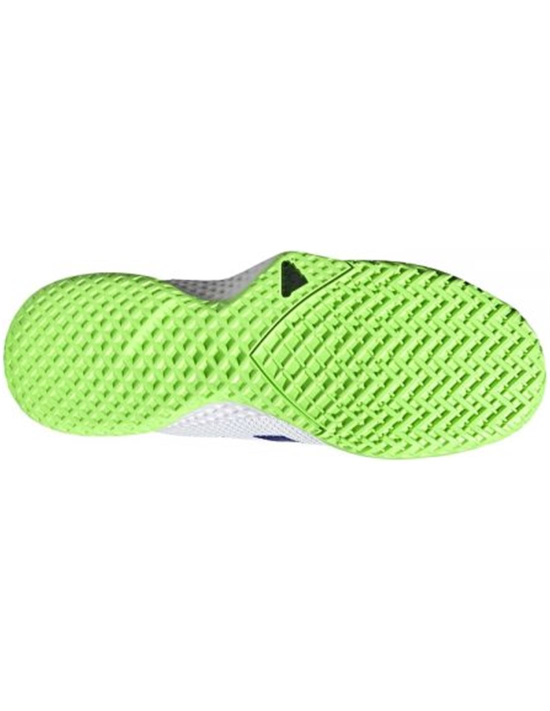 El diseño de estas zapatillas destaca por su elegante silueta en color blanco con detalles adidas en color azul y verde.
