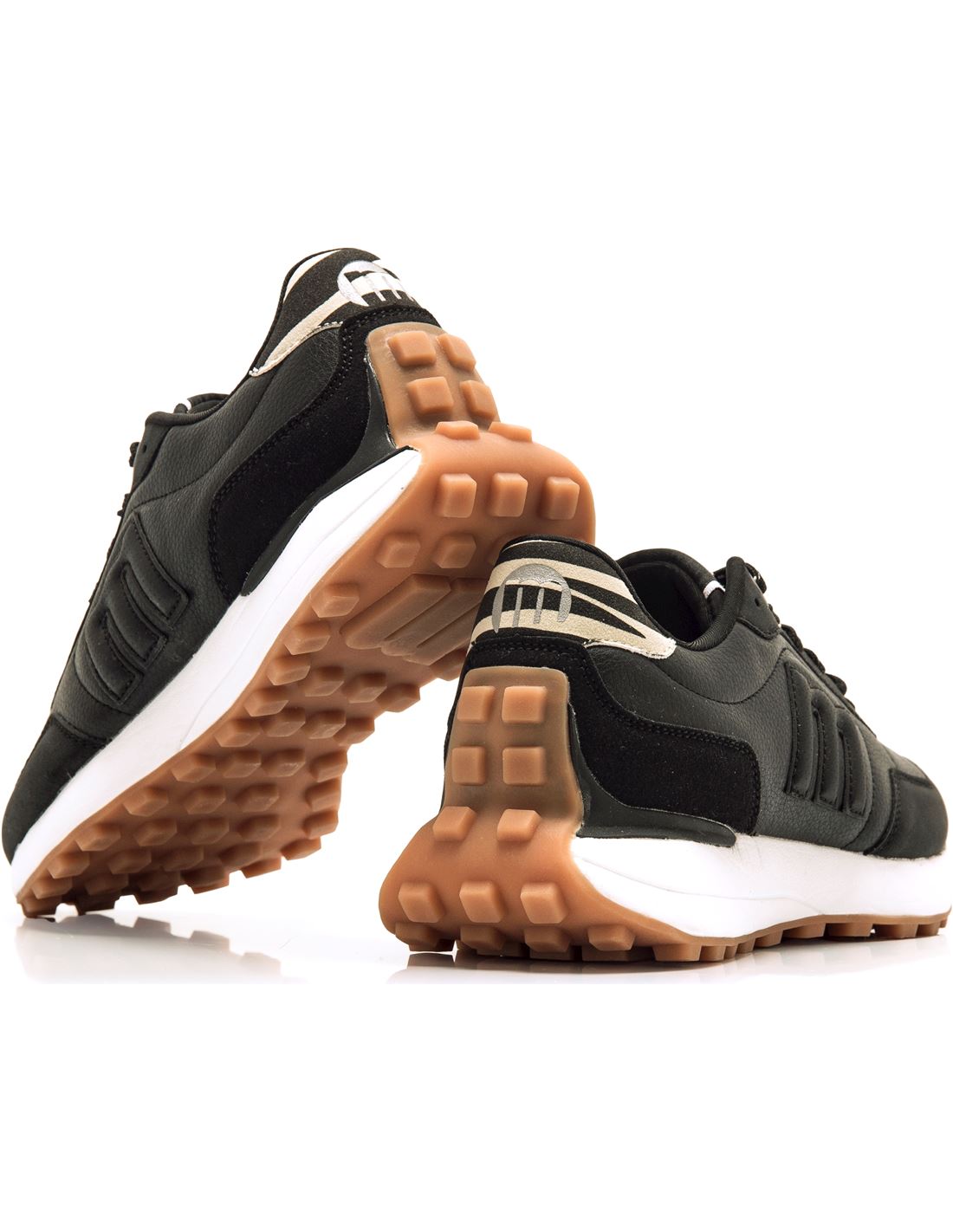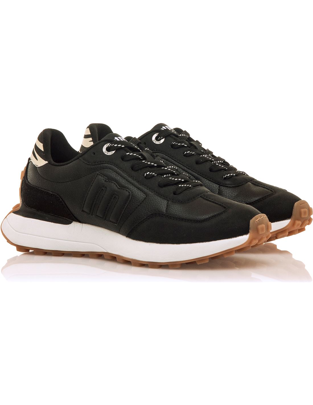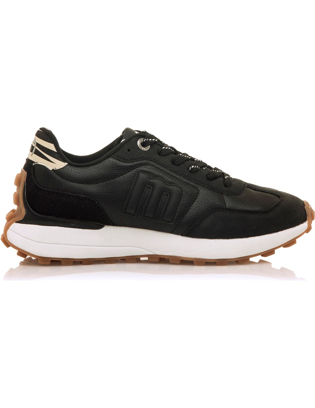 Zapatillas negras para mujer Mustang modelo Zinc, de inspiración deportiva retro. Presenta una suela con tacos en color caramelo que sube hasta el talón y mejora la tracción. El detalle animal print de cebra beige y negro sobre el talón aporta contraste y dinamismo, mientras que su suela blanca elevada aporta confort. Incorporan una plantilla extraíble con tecnología Starfit y diseño termoconformado, que se adapta perfectamente al contorno del pie para ofrecer un soporte óptimo. Gracias a la espuma Comfort Foam, garantizan una amortiguación excepcional y comodidad durante todo el día.