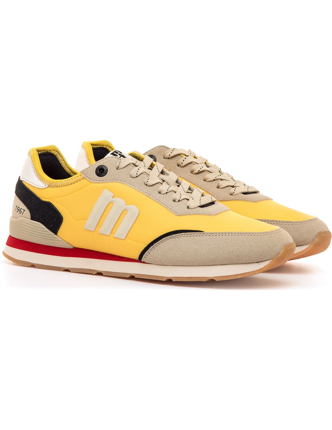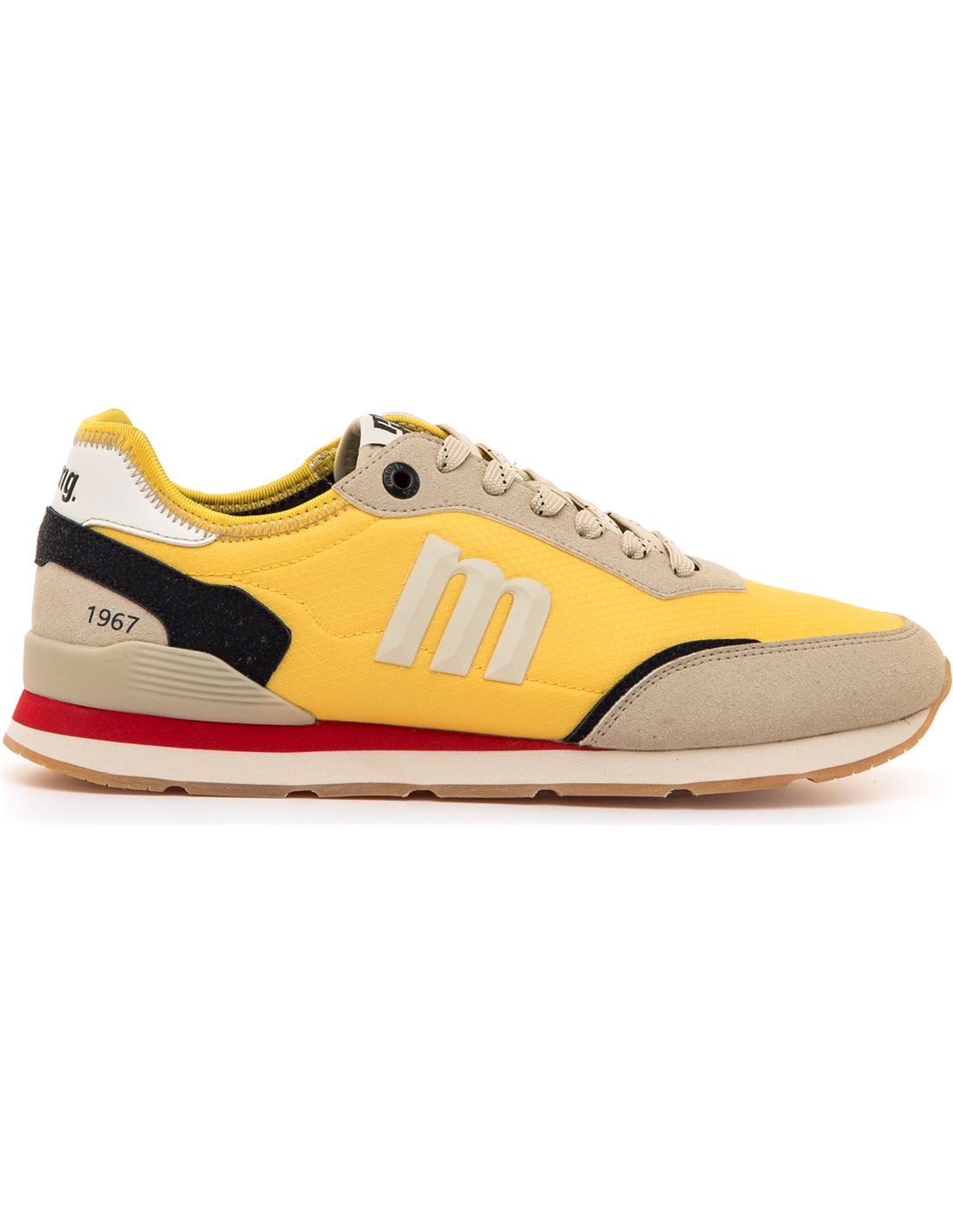 Zapatillas para hombre de Mustang, modelo Joggo, con inspiración retro running. Su diseño combina paneles en contraste y una suela con franja que aporta un estilo dinámico y juvenil. Incorpora logotipo lateral en relieve, talonera con inscripción "1967" y ojales metálicos que refuerzan su carácter deportivo. Equipadas con plantillas con tecnología Starfit para una mayor comodidad en cada paso. Con certificado VEGANO sellado por INESCOP.