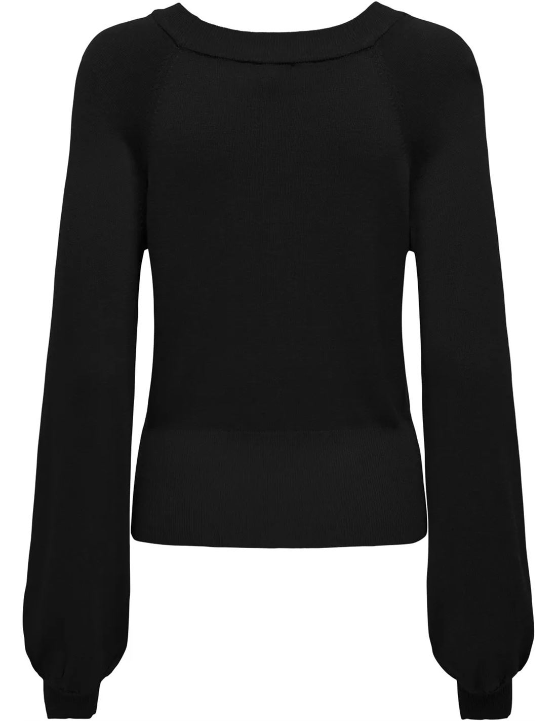 Jersey de punto acanalado de mujer con cuello en V. Mangas largas con volumen.