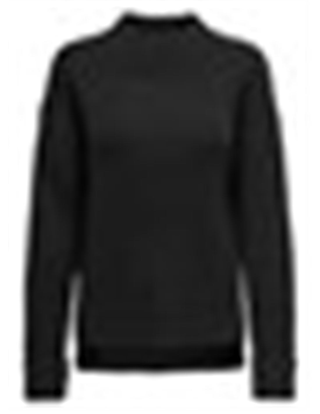 Jersey de mujer con cuello subido. Mangas largas vueltas. Bajo asimétrico, siendo la parte trasera más larga.