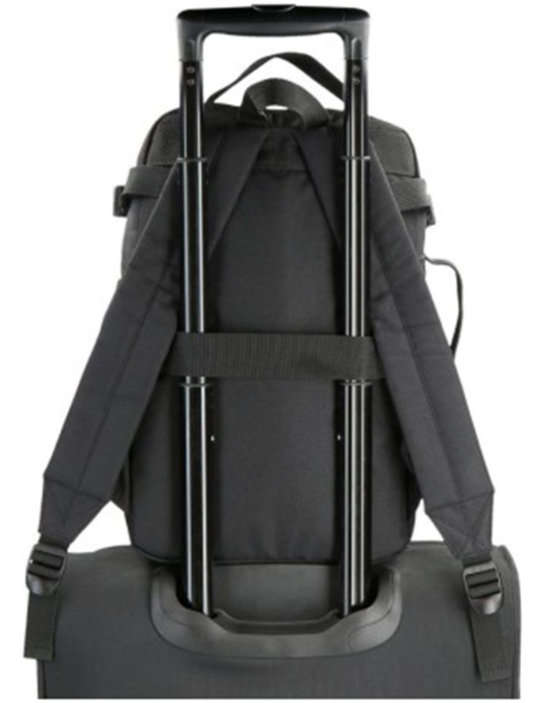 Pensada para viajar sin complicaciones - incluye banda trasera para acoplarla fácilmente al trolley.