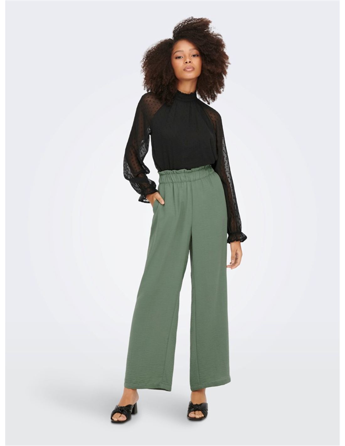 Pantalón de mujer de pernera ancha. Bolsillos laterales. Cintura alta.