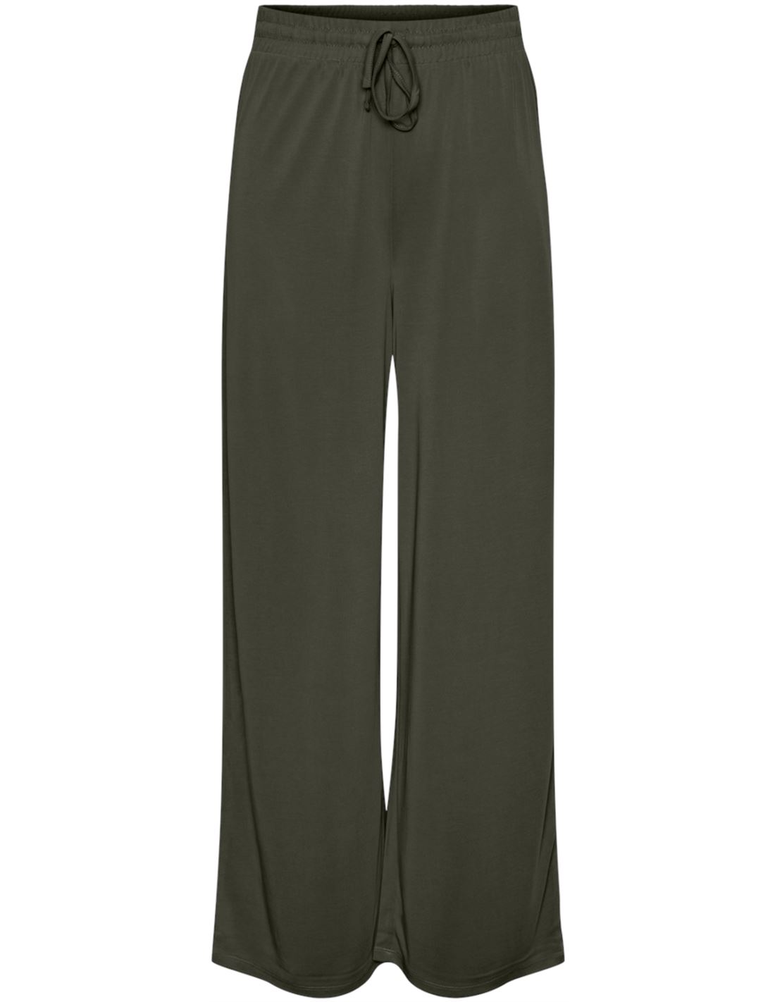 Pantalón de mujer de cintura alta y con cordón. Ajuste pierna ancha. Tejido liso y suave que cae de forma similar a la seda.