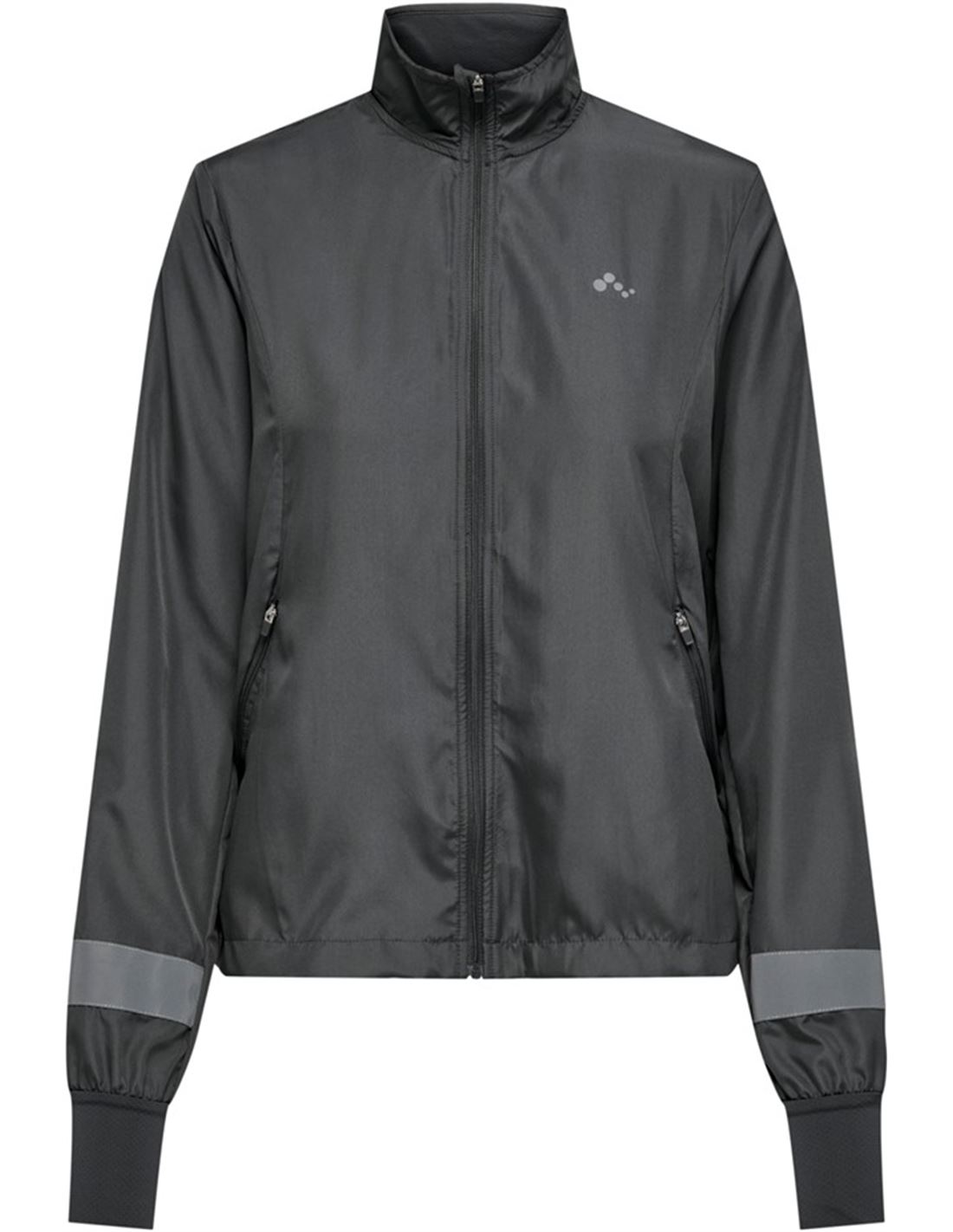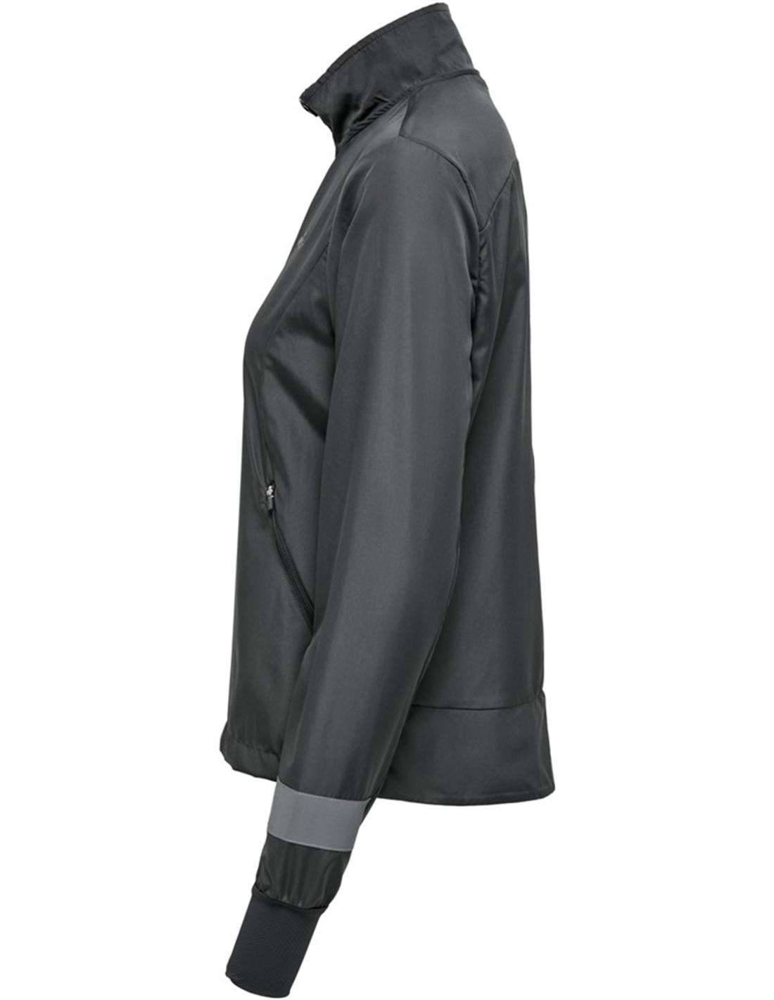 Cortavientos de mujer manga larga. Cuello alto y cierre con cremallera. Puños con orificio para el pulgar. Detalles reflectante.