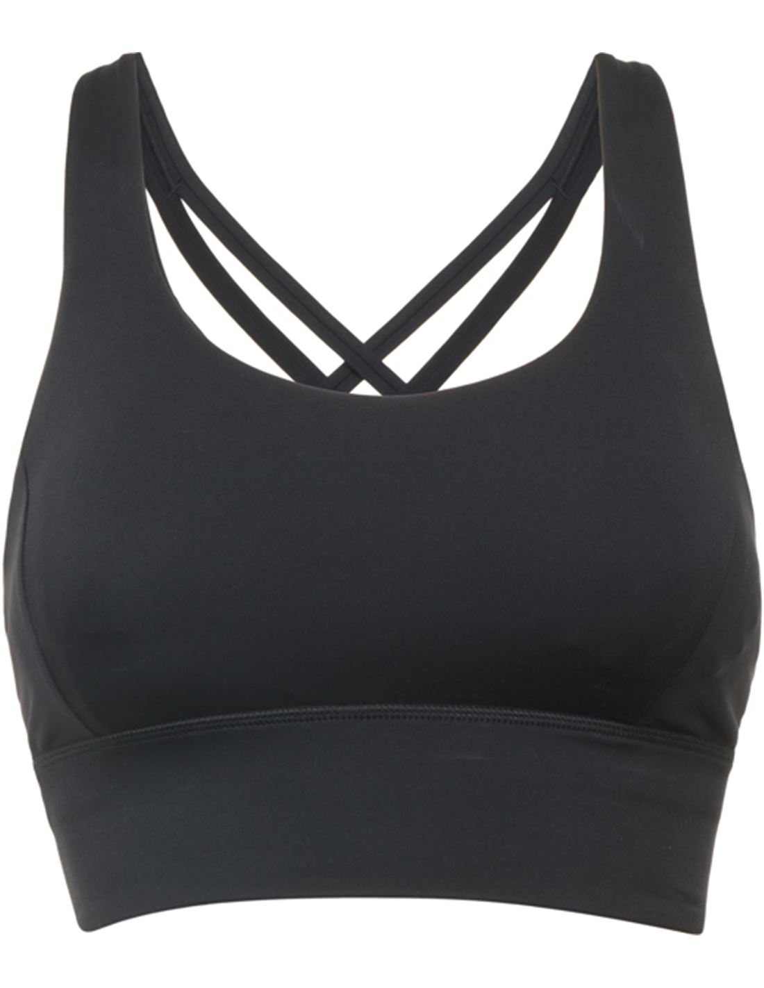 Top técnico de mujer. Tejido transpirable. Espalda con tirantes cruzados de diseño. Sujeción alta.