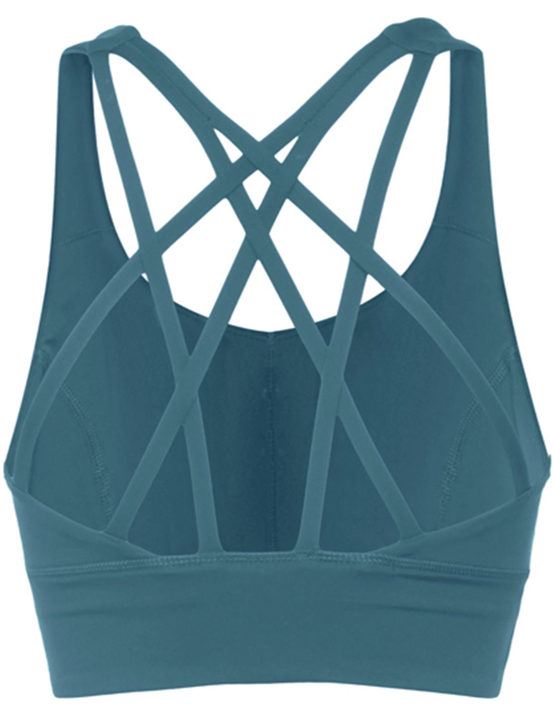 Top técnico de mujer. Tejido transpirable. Espalda con tirantes cruzados de diseño. Sujeción alta.