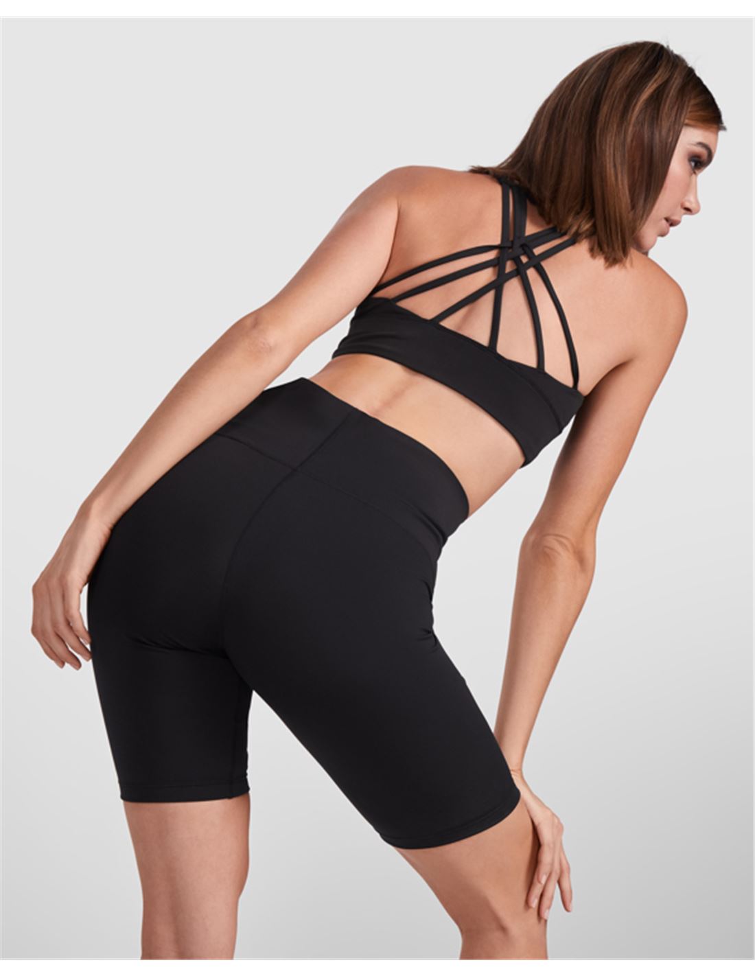 Top técnico de mujer. Tejido transpirable. Espalda con tirantes cruzados de diseño. Sujeción alta.