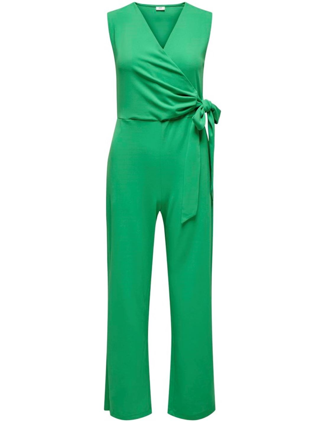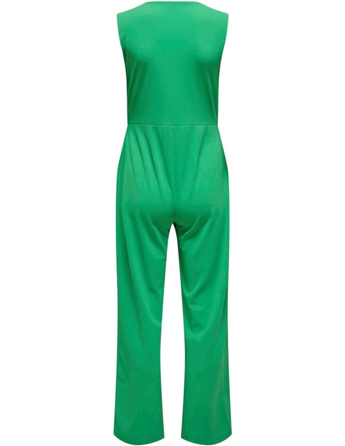 Mono de mujer sin mangas. Corte en la cintura con lazada. Escote en V.