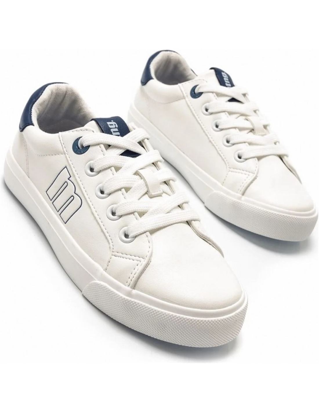 Zapatilla Emi Mustang para niño, inspirada en la tradicional bamba blanca con cordones al tono. Incluye la trasera de color. Logo de la marca bordado al tono en el lateral. Suela de goma ligeramente alzada para mayor comodidad en la pisada.
