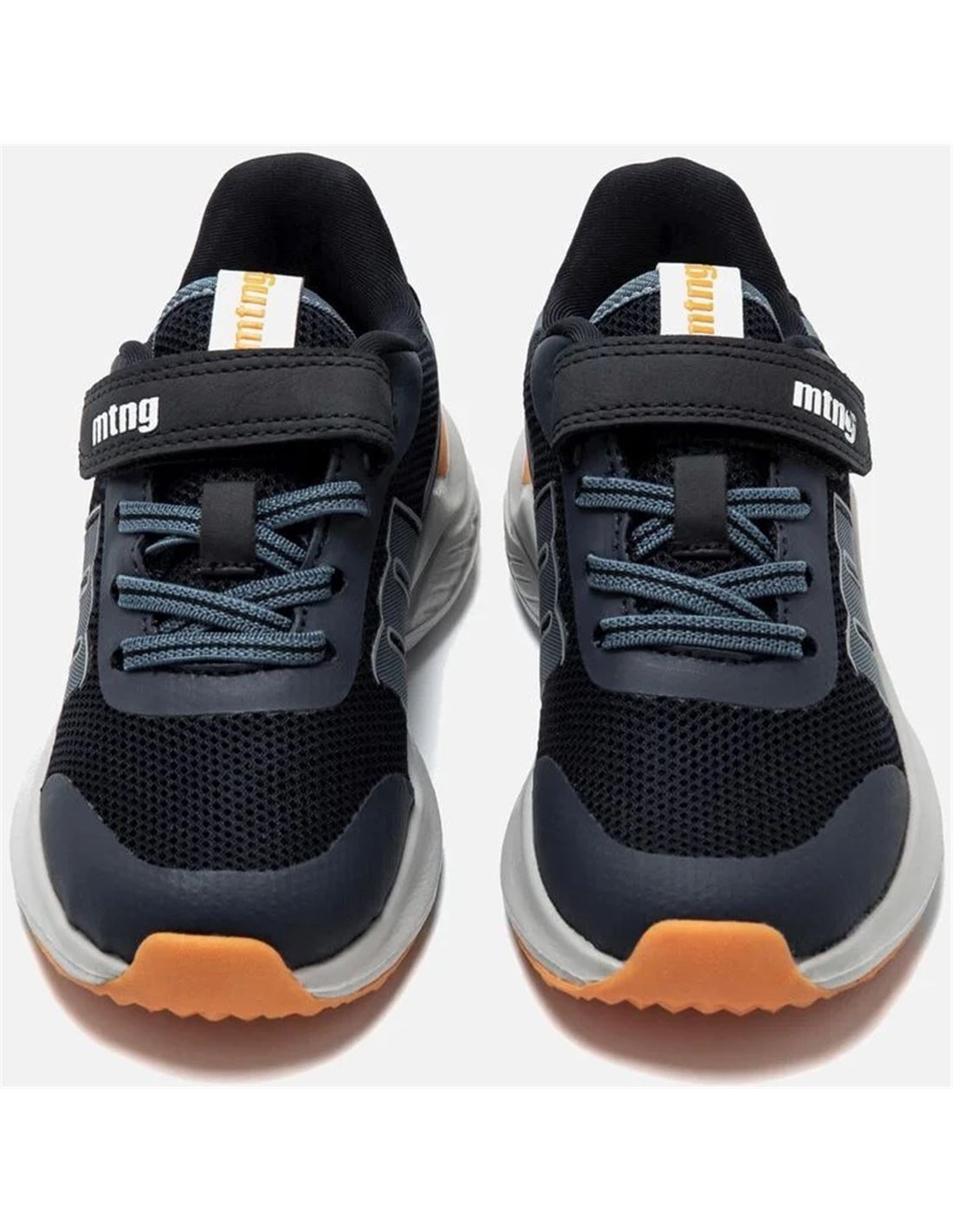 Zapatilla deportiva Somo Mustang para niño. Diseñada en color, incluye detalles en la suela y borde superior de color. Tira adhesiva para una puesta más fácil y rápida. Logo de la marca en el lateral y lengüeta. Cómoda suela de estilo running, perfectas para ir al cole o al campo.