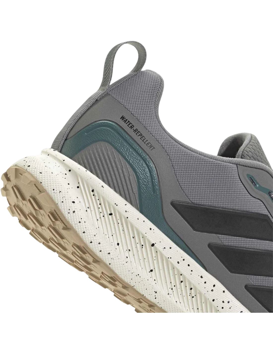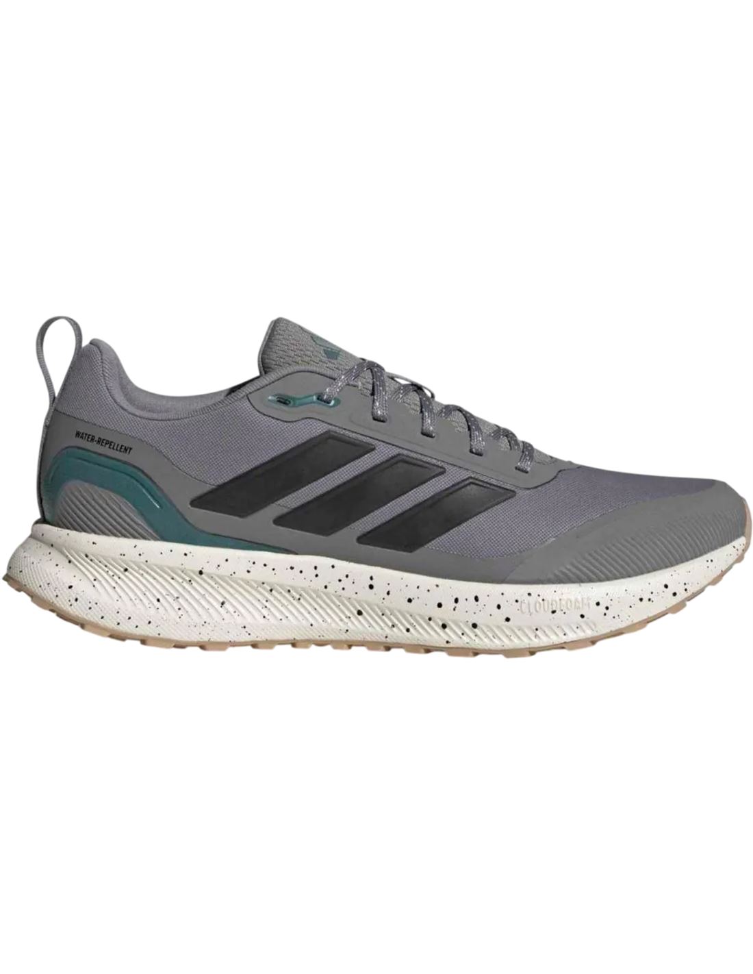 Horma clásica Cierre de cordones Empeine de malla con acabado que repele el agua y detalles reflectantes Forro textil Banda de refuerzo Mediasuela Cloudfoam Peso: 301 g (talla 42 2/3) Drop: 10 mm (talón: 34 mm / antepié: 24 mm) Suela Adiwear