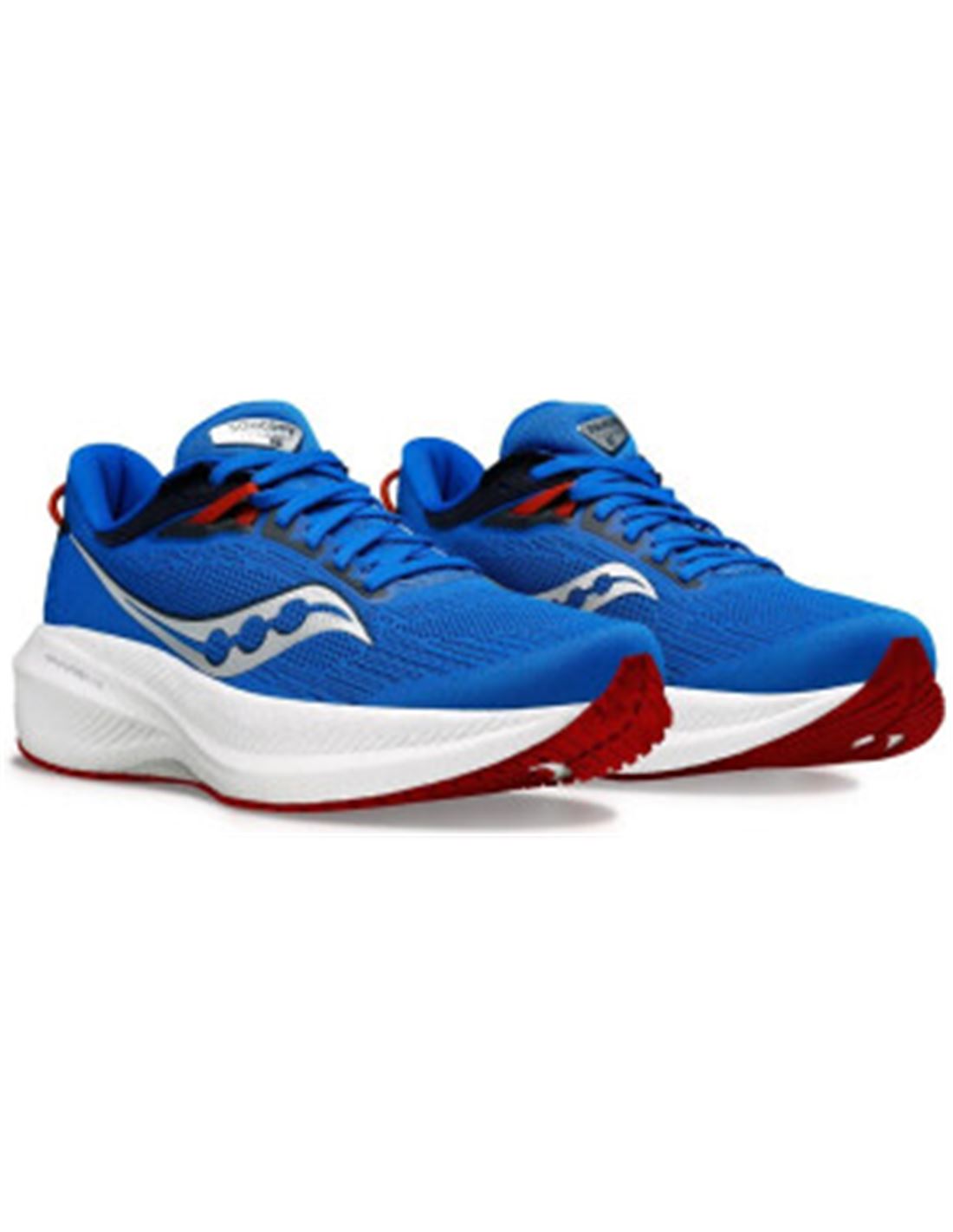 Para correr por asfalto más de 4 veces por semana no menos de 60 minutos. Las nuevas zapatillas running hombre Saucony Triumph 21 llegan con pequeños retoques en su upper para seguir reinando en comodidad y fiabilidad sobre la carretera. Diseñadas para ofrecer una respuesta única y acumular kilómetros sin descanso. En esta versión 21, Saucony ha rebajado su peso y mejorado sus cualidades para conservar la magia de su tacto. El renovado empeine con 360º de sujeción segura, se combina con la mediasuela de máxima amortiguación PWRRUN+ y potente reactividad, que harán que te sientas más ligero y seguro en cada sesión. Para entrenamientos a ritmos medios o lentos sobre cualquier distancia, acolchadas, fluidas y de alto rendimiento. Este modelo contiene materiales reciclados. Las zapatillas de running Saucony Triumph 21 Azul Blanco están realizadas con un nuevo upper en tejido de malla que se adapta como un guante para conseguir un movimiento natural. Cuentan con un increíble ajuste dinámico y el ancho perfecto para adaptarse a la forma de cada pie. Tirador en la ojetera que ayuda a la estabilización y sujeción del empeine. La mediasuela de la zapatilla Saucony Triumph 21 incorpora la tecnología PWRRUN+ de amortiguación ligera, más elástica y con más reactividad. Mejora la fluidez con una respuesta incansable durante todo el recorrido. Plantilla FORMFIT que se adapta al pie con más suavidad. La zapatilla running Triumph 21 lleva el compuesto Crystal Rubber con inserciones de caucho que aportan dureza y tacto en cada pisada. Patrón de diseño de excepcional direccional, flexibilidad y resistencia a la abrasión. CARACTERÍSTICAS TIPO ACTIVIDAD: Entrenamiento TIPO DE PISADA: Supinador PESO RECOMENDADO: 75kg-90kg INTENSIDAD DE USO: Alta NIVEL: Experto CORTE: Empeine en tejido monomalla de ajuste dinámico. Diseño FORMFIT y Support Frame en el talón de estabilización y sujección. Sistema de guía adaptativa con tiradores. Huella más ligera, contiene materiales reciclados. MEDIA SUELA: Compuesto PWRRUN+. Plantilla FORMFIT. Drop 10 mm. AMORTIGUACIÓN: Tecnología PwrRun+ espuma reactiva para una mayor elasticidad, mejor amortiguación, y más respuesta y durabilidad. SUELA: Compuesto de caucho Crystal Rubber con patrón de diseño direccional. PESO: 255 gr. TIPO PISADA: Neutro