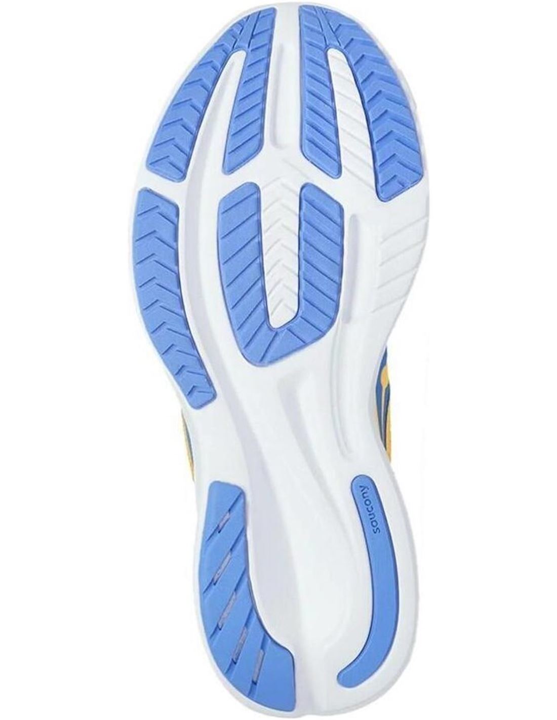 La zapatilla running Saucony Ride 15 presenta una suela con caucho XT-900 carbon en las zonas de contacto, más tracción y resistencia a la abrasión. Diseño Tri-Flex direccional.
