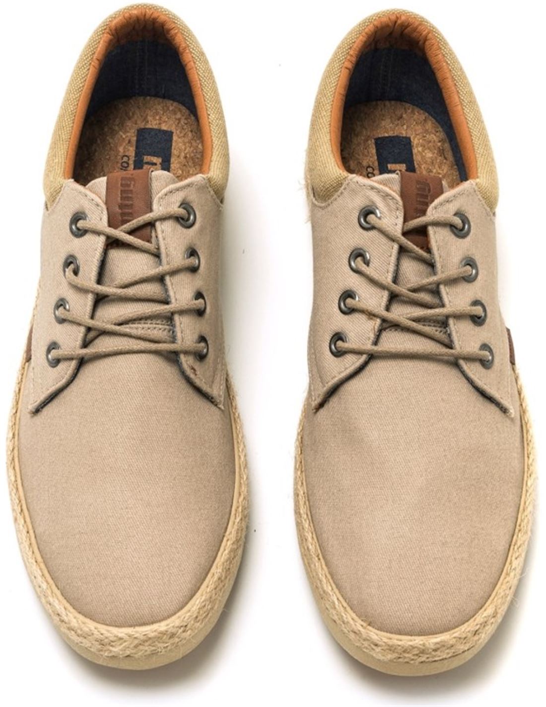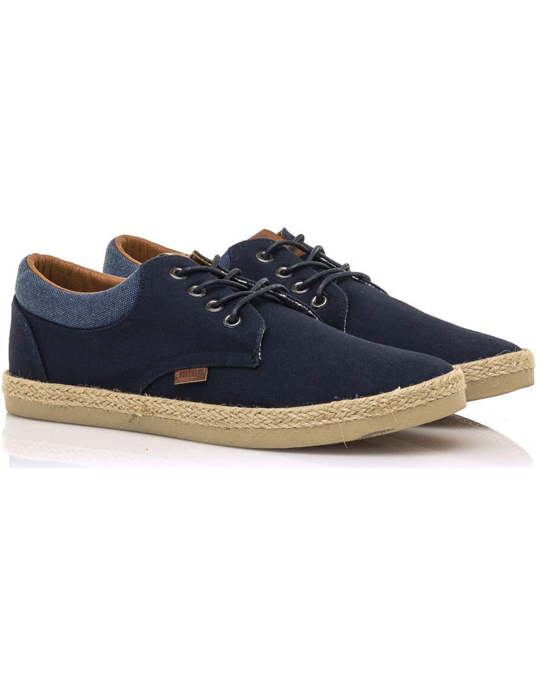 Zapato casual Bequia Mustang para hombre. Con un panel más claro en la trasera. Cierre de cordones redondos. Suela con detalle de tira de yute. Logo de la marca en una etiqueta lateral.