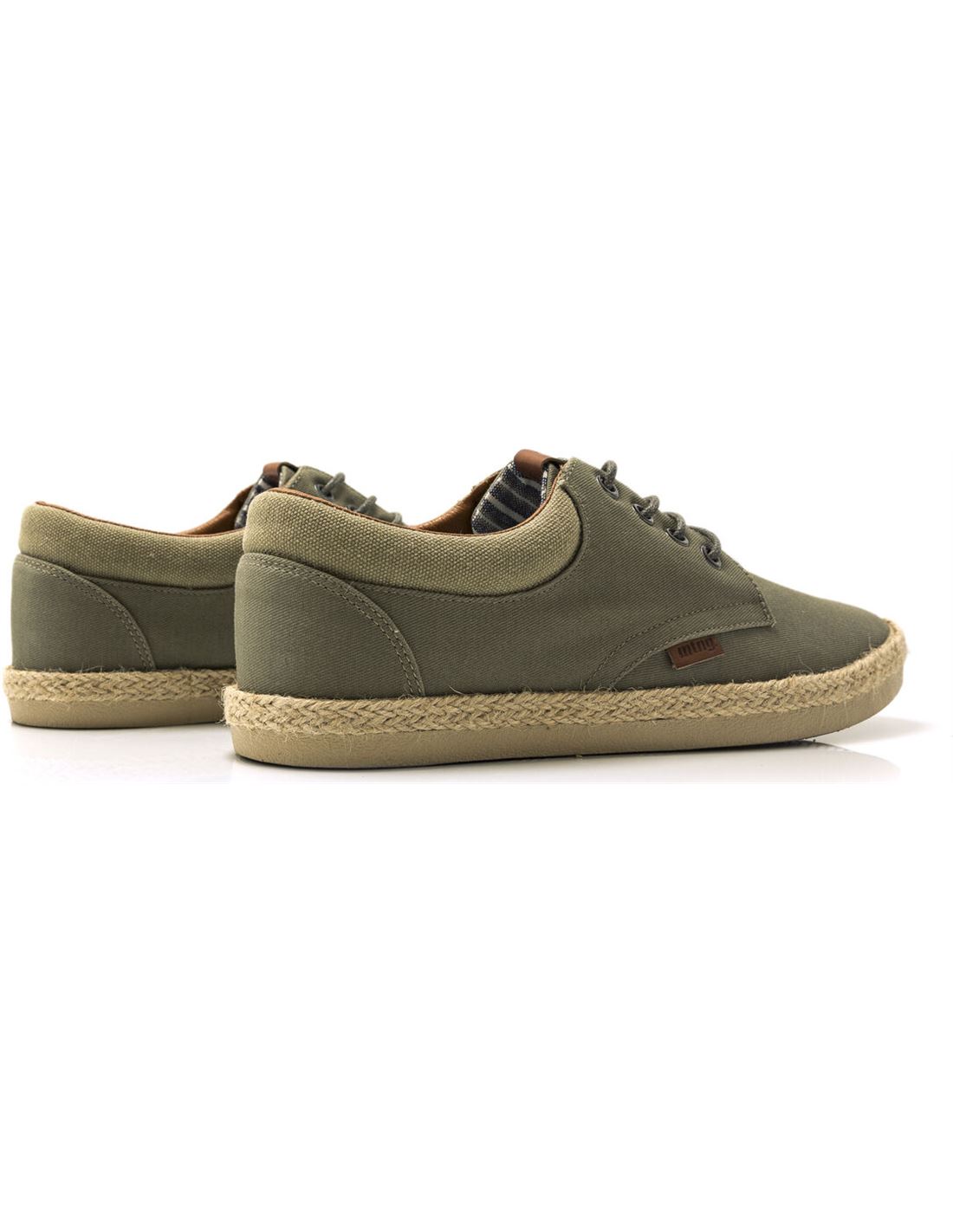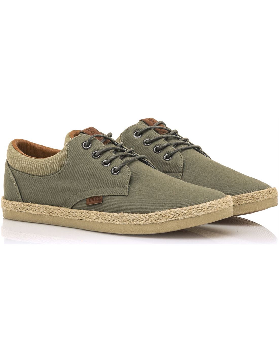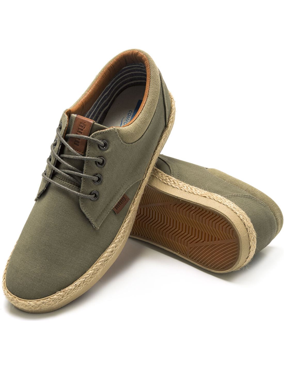 Zapato casual Bequia Mustang para hombre. Con un panel más claro en la trasera. Cierre de cordones redondos. Suela con detalle de tira de yute. Logo de la marca en una etiqueta lateral.